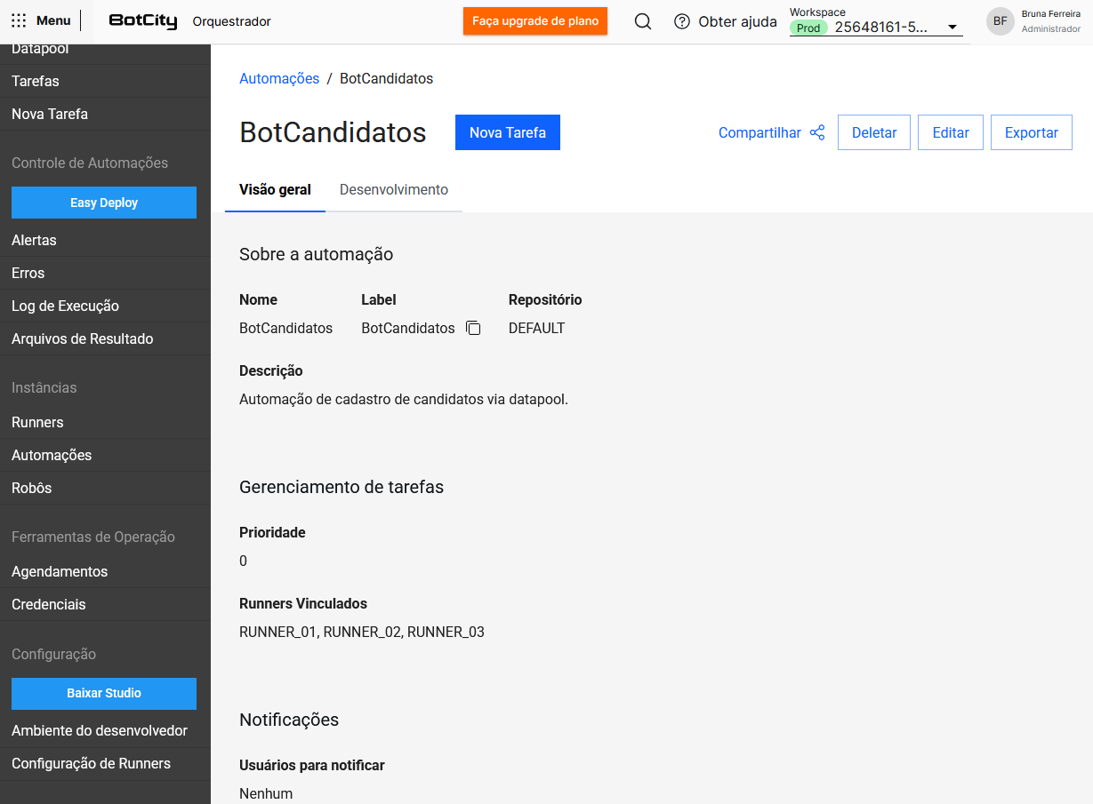 Agora que os ambientes estão preparados e os Runners ativos, vamos fazer as configurações necessárias na Automação para que ela execute sem problemas nesses ambientes.