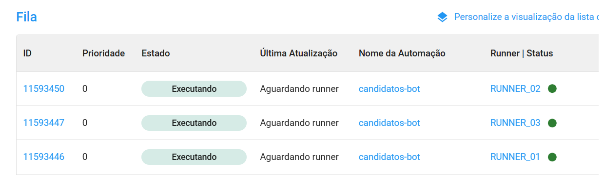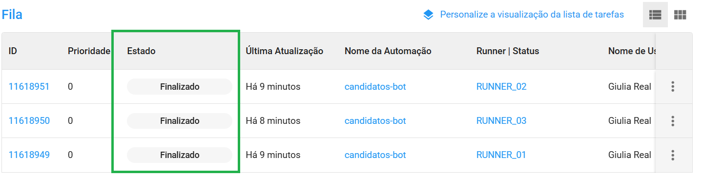 Após alguns minutos, veja que as tarefas foram finalizadas com sucesso, e os cadastros dos candidatos foram efetivados, como indicado na imagem abaixo: